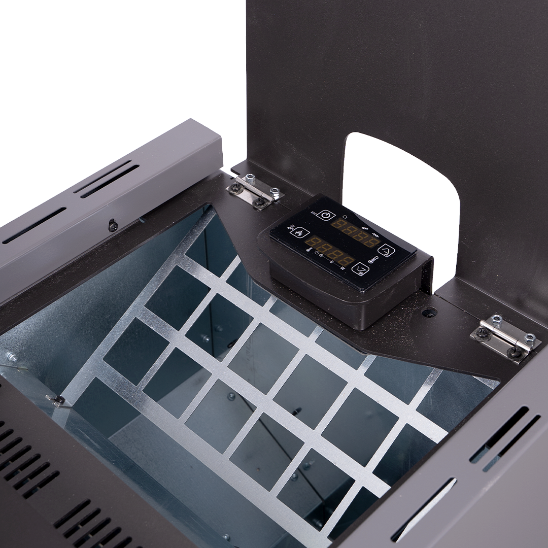 Su panel digital permite programar hasta 3 encendidos diarios, y su construcción robusta —con cuerpo de acero y brasero de hierro fundido— asegura durabilidad y calor constante.